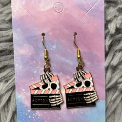 Handmade earrings directors film clapper board with skeletons pink white black$12Beaumont, TX