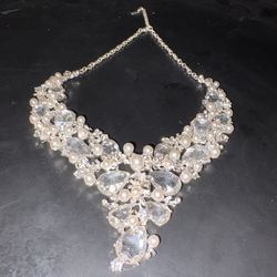 Vintage Statement Silver Tone Necklace Pearl & Crystal Rhinestone Signed with H$50Port Acres, TX
