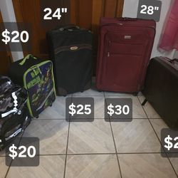 Rolling suitcases, ninja turtle child case, backback w/wheels, vintage hardcase suitcase.