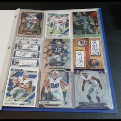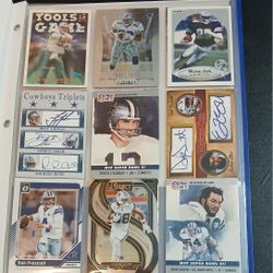 Binder of 27 Dallas Cowboys cards. $10 for everything together. Includes cards of Smith, Aikman, Irvin, Staubach, Prescott, Lamb, rookie cards and mo$10Harlingen, TX