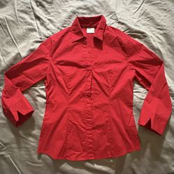 Lee Riders Top Womens Small Red Button Up Cotton Blend Easy Care Casual Fitted$8La Feria, TX
