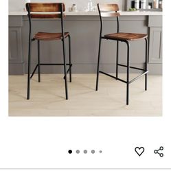 4 Like-New Emma + Oliver Blanchard Solid Wood Bar Stools – Black Metal Frame