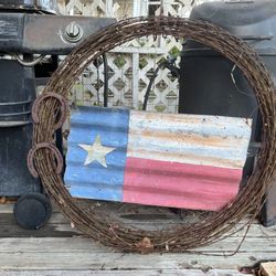 Barbed Wire XL Wreath + Horseshoes + Texas Metal Flag OBO🤠$95Wixon Valley, TX