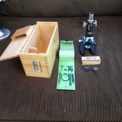 Vintage PERFECT Model 802 Dissecting Microcope Kit with Slides ,Wood Case 5x and 15x power Lenses$60College Station, TX