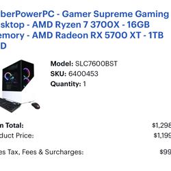 CyberPower Computer PC Prebuilt Desktop, Ryzen 7 3700X, RX 5700 XT, 16GB, 1TB NVME$680College Station, TX