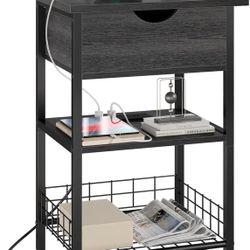 Gadroad End Table with Charging Station, Bed Side Table with Drawer, Night Stand for Bedroom, 3-Tier Storage End Table, for Living Room - Rustic Grey$45College Station, TX