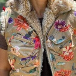 “Oilily Women’s Floral Puffer Vest Faux Fur Trim Full Zip Beige Size Small 6 EU Boho”$50Robinson, TX