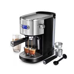 2-Cup Silver Stainless Steel All in 20-Bar Semi-Automatic Espresso Machine with Led Display and Steam Milk Foam $79Richardson, TX