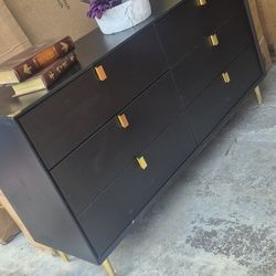 MODERN BLACK & GOLD 6 DRAWERS DRESSER WITH METAL GOLD LEGS LIKE NEW 56X17X31$175Hickory Creek, TX
