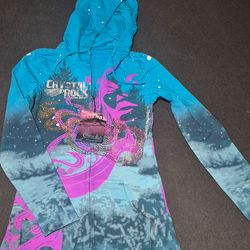 NWT Rare Vintage Y2K Crystal Rock by Christian Audigier full zip-up hoodie Womens XS$60Mesquite, TX