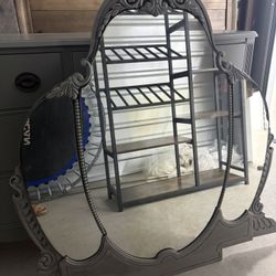 Antique mirror with beautiful patina, refinished in gray with a dark wash.$125Mckinney, TX