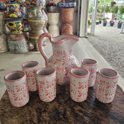 Mexican Engobe Pitcher With Cups .Clay Pots, Planters,Plants, Pottery $75 Cada Set.$75Wylie, TX