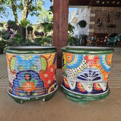 Talavera Large Barrel Clay Pots, Planters,Plants, Pottery $65 cada uno.$130Wylie, TX