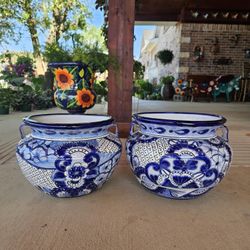 Talavera Blue And Turquoise Clay Pots. Planters. Plants. Pottery $60 cada uno$120Wylie, TX