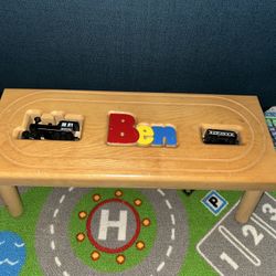 Handmade Name Puzzle Stool with Wooden Train: BEN OR BENJAMIN $80Richardson, TX
