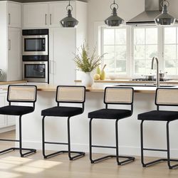 Zesthouse Natural Rattan Bar Stools Set of 4, 26'' Modern Counter Height Stools, Velvet Counter Height Chairs with Solid Wood Back, Mid Century Cantil$180Argyle, TX