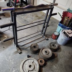 weight plates, stand and Olympic curl bar $225Burleson, TX