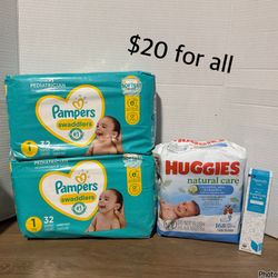 Pampers diapers size 1 & Huggies wipes $20Mesquite, TX