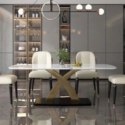 Dashon Modern Rectangular Sintered Stone Dining Table with Gold Stainless Steel Base$1,150Fort Worth, TX