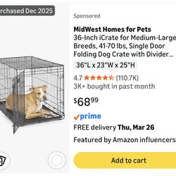 Foldable Dog Crate w/ Tray – Medium Size (30")$25Coppell, TX