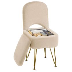 GREENSTELL Small Vanity Stool Chair with Storage and Folding Back, Square Faux Fur Soft$30Garland, TX