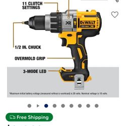 Dewalt 20V 1/2 in. hammer drill with 3ah battery, bag, and charger included (DCD799L1)$120Fort Worth, TX