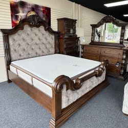 Royal Highlands Rich Cherry Upholstered Panel Bedroom Set/ Dresser, Mirror, Nightstand,bed// Mattress Sold Separately $2,219Dallas, TX