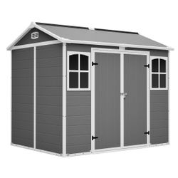 Plastic Utility Shed 8x6 ft with Floor – Lockable Storage Shed for Garden Tools & Trash Bins, All-Weather Outdoor Organizer in Gray-White$650Grand Prairie, TX
