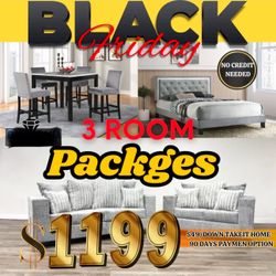 NEW 3 ROOM PACKAGE DEAL- BED MATTRESS DINING ROOM SECTIONAL SOFA AND MORE $54Fort Worth, TX