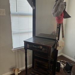 I sell a hall furniture that includes a mirror table with a geometric base and a round mirror$500Arlington, TX