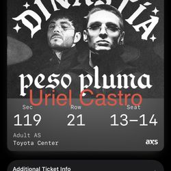 Par de entradas para Peso Pluma con Tito Doble P Pair of tickets to Peso Pluma with Tito Doble P$1,000Houston, TX