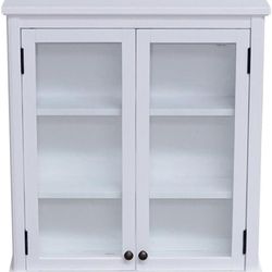 torage Cabinet with Glass Doors - White - 27" W x 29" H - Fully Assembled - Adjustable Shelves