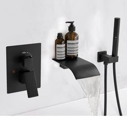 Wall Mount Bathtub Faucet Waterfall Tub Faucet with 2 in 1 Handheld Sprayer Matte Black Modern Bathroom Tub Filler Solid Brass Single Handle Shower Fa$100Houston, TX