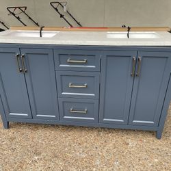 Home Decorators Collection Madsen 60 in. W x 22. D x 34 in. H Double Sink Bath Vanity in Grayish Blue with White Engineered Marble Top$750Houston, TX