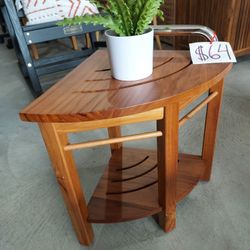 Lovitgo 19'' Teak Shower Bench with Handle, Corner Shower Stool for Shaving Legs, Shower Bench Stool for Inside Shower, Waterproof