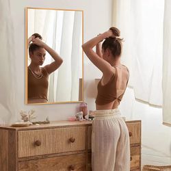 NeuType Wall-Mounted Mirror Rectangular Hanging Mirror Metal Framed Wall Mirror, Best for Bathroom, Washroom, Bedroom, Living Room, Gold, 36"x24"