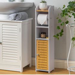 New in box Bathroom Storage Cabinet Toilet Paper Storage for Small Bathroom with Toilet Roll Holder,Toilet Paper Stand for Small Space,White/Bamboo$35Houston, TX
