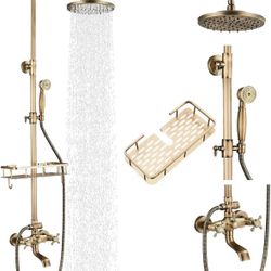New Antique Brass Shower Fixture Bathroom Shower Faucet Set 8 Inch Rainfall Shower Head Handled Shower Waterfall Tub Spout Wall Mounted Outdoor Shower$150Houston, TX