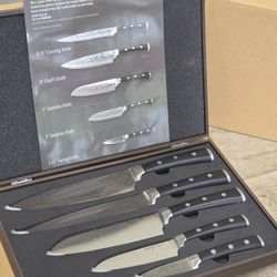KUMIKO Kitchen Knife Set Black, 5-Piece Chef Knife Set, Ultra Sharp High Carbon Stainless Steel Knives like Ninja Brand$40Houston, TX