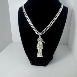 Cadena con dije de la Santa muerte Plata 925 italy$110Houston, TX