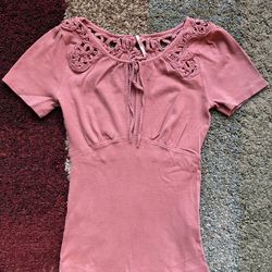 Free People Pink Crochet Neckline Short Sleeve Top – Boho Style – Size Small$12Houston, TX