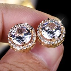 Exquisite Micro Pave 14K Gold-Plated Cubic Zirconia Men Women Stud Earrings$12Houston, TX
