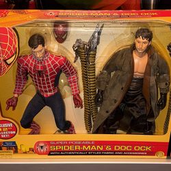 Marvel Toybiz 2004 Spider-Man 2 Super Poseable 12” Spider-Man (Tobey Maguire) & Doc Ock (Alfred Molina) Movie Exclusive Collector 2-Pack Set New NRFP $200Stafford, TX
