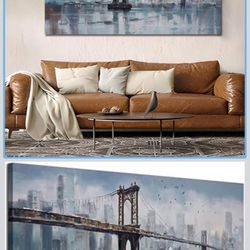 Enartly Brooklyn Bridge Wall Art Canvas Abstract Skyline New York City Painting Modern Bridge Colorf$30Houston, TX