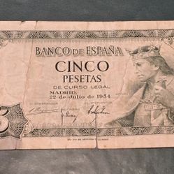 1954 Banco de Espana Cinco Pesetas Antique Spanish Circulated Bank Note$30Houston, TX