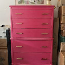 Gorgeous antique pink wooden dresser + cute lamp and shade + framed wall art$100Houston, TX