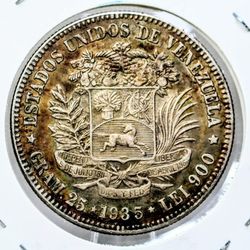 1935 Venezuela 5 Bolivar Silver Coin Toned$50Houston, TX