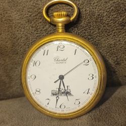 Vintage Chantel Quartz Swiss Made Open Face Pocket Watch Train Gold Tone$80Baytown, TX