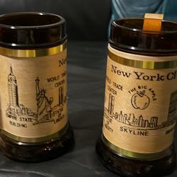 2 vintage New York City souvenir beer mug with a wood handle. The mug is made of amber brown $40Houston, TX