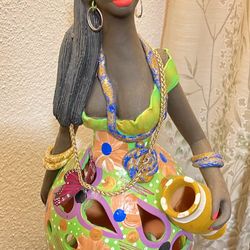 Rare Vintage Handmade Ceramic Woman Figurine, Latin American Art, Multicolor Pattern, Ethnic Decoration, Bohemian Decoration, From 80's$100Houston, TX